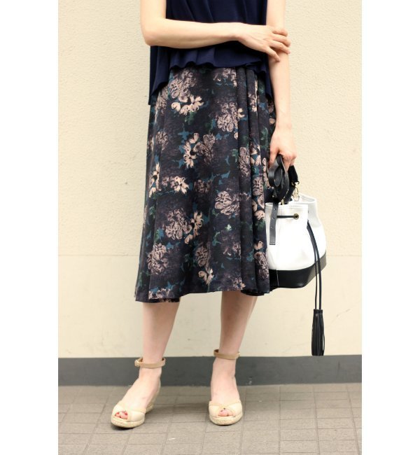 【スピック&スパン/Spick & Span】 E/シャンタン ハナプリント アシンメトリースカート◆ [送料無料]