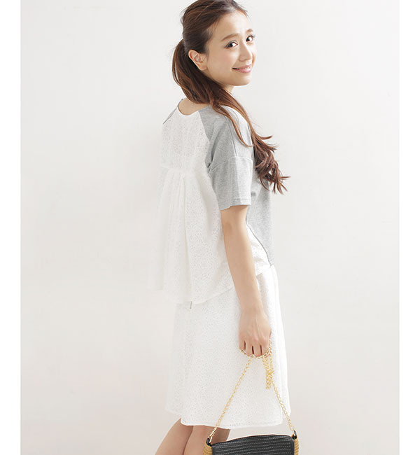 【送料無料】 ■ポンチ&レースでトレンドコーデの完成!■トレンド感のあるコーデが叶うセットアイテムが登場。カジュアルなイメージのポンチ素材に繊細なレースを合わせることで上品レディにシフト。甘くなりすぎない程よくフェミニンさの残るアイテムは、スタイリングに取り入れやすいのが嬉しいですね。 甘さのバランスにもこだわりがトップスは後ろだけをレースにすることで甘さのバランスをとり、前後の見え方に変化をプラス。コンパクトな丈感が女性らしいシルエット実現します。スカートは軽やかなレースがシーズンムードを演出。ウエストゴムでリラックス感のある着心地が楽しめるのも◎ コーデの幅が広がること間違いなし!セットではもちろん別々で着てもレースの華やかさの残るので、お手持ちのアイテムと合わせればフェミニンなアクセントをプラスした様々なスタイリングが可能。合わせるアイテム次第でデイリーからオフィスまで様々なシーンにマッチします。 ナノ・ユニバース/nano・universe Broderie&Co|ワンピース|ワンピース