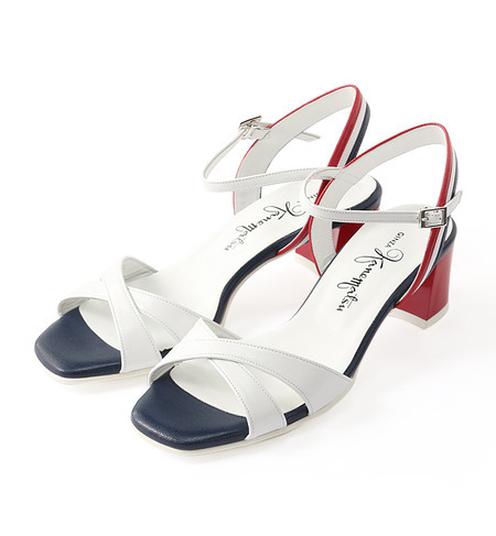 【送料無料】 ほんのり台形型のブロックヒールが今年らしいシルエットのサンダル。華奢なクロスベルトで、すっきりとした足元を演出してくれます。シンプルで合わせやすく、カラーコンビがスタイリングのアクセントにおススメです。※Steady.7月号掲載商品です。 ギンザカネマツ/銀座かねまつ 銀座かねまつ|シューズ|サンダル