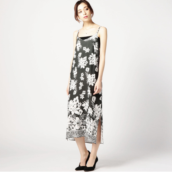 【ローズバッド/ROSEBUD】 LOP-16137 ボタニカル柄バックリボンスリットワンピース [送料無料]