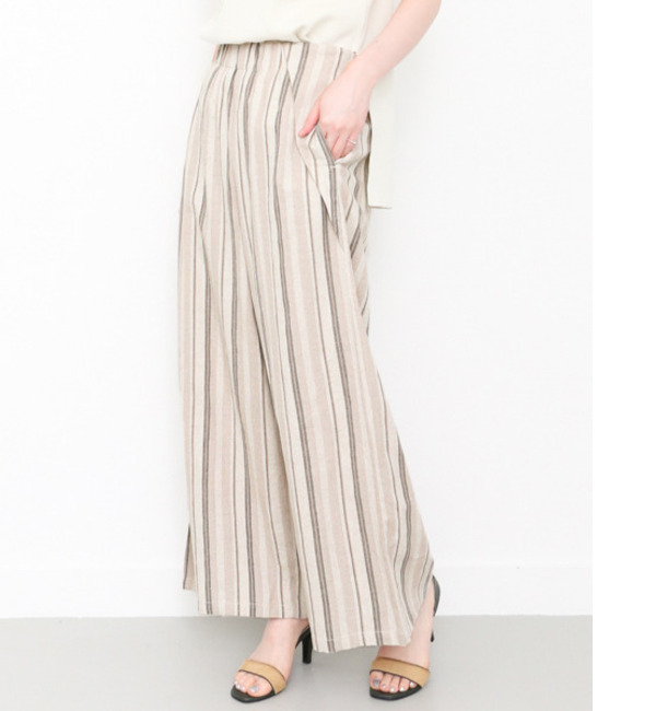 【送料無料】 デイリーアイテムとして大活躍間違いなし!!落ち着いたカラーリングのストライプ柄イージーパンツ。清涼感のある麻を含んだ素材はこれからの季節に欠かせませんね。ゆったりとしたワイドシルエットはどんなトップスとも好相性◎コンパクトなトップスを合わせればパンツが主役のスタイリングが完成しますよ。ワードローブにあると心強い1着。オススメです。※この商品は麻素材を使用しているため、ネップや織りキズのようなものが見られますが、不良品ではございません。天然の麻の特性としてご理解ください。 ケービーエフ/KBF パンツ|その他