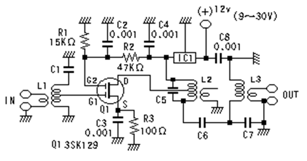 (2)希望周波数の中央周波数で感度が最大になるようにL1を調整します。この時受信する信号はなるべく弱い信号にしてください。