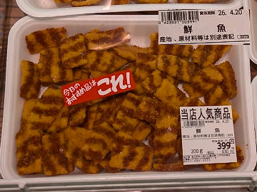 | 9501 | 昨日までの50話を過去ログに移しました。興味のある方はご覧ください。 さて、では今日は市内にあるスーパーで見かけたこんなものをご覧ください。 ![]() スーパーの魚コーナーにあったんですけど、どう見てもカツですよね。揚げてあるカツ。なのに商品名は「鮮魚」ってなってます。まあ、新鮮な魚を素早くさばいて揚げたのかもしれませんけど、普通、魚屋さんで売られてる鮮魚って生の姿のままのやつを思い浮かべますよね。百歩譲っても切り身まででしょう。なのにこれはカツで、しかも見た目はカープカツみたいなお菓子チックなカツです。ソースまでかかったカツ。それを鮮魚って言われても、ちょっと納得いかないですよね。もしかして関東では普通なんでしょうか??? |