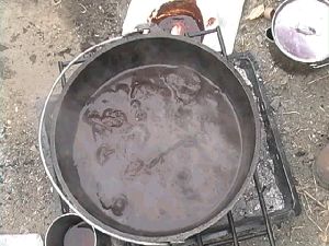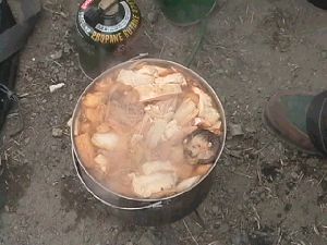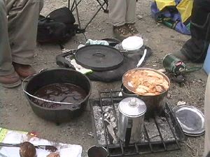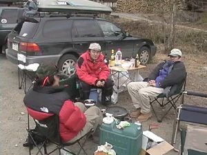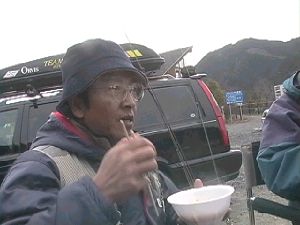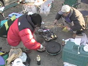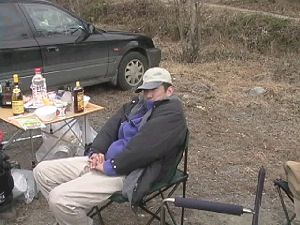 新世紀になって新しくなったKSFでフライをやろう〜と集まれる人だけで 「KENちゃん新年会オフ」が開催されました。 集合時間6:00なのに前夜の3:00頃から氷点下の中で宴会を始めるメンバー も居て、早くも宴会モード(*^▽^*)。飲めや飲めやじゃなくって、寒い寒い 氷点下の中での宴会は寒かったですねぇ。いとふさんは自慢のダッジオーブンで 牛タンを使ったデミグラスソースの煮込(正式名?)を作って、参加者の舌を打た せてくれました。KENちゃんもおなじみの特製KEN鍋で暖めてくれました。 美味しい料理に寒い釣果でしたが、皆さん楽しい釣り初めになったようです(^o^) 肝心の釣りの写真はありませぬ、釣れないからってポンドまでカメラを持って行きま せんでしたぁ(^^;)悪しからず。 |
