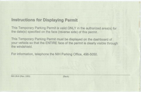 ただ、以前(一年ぐらい前まで)は国際運転免許証でも一年間有効な駐車許可証がもらえたそうですが、現在は30日間が有効期限の仮許可証しかもらえません(と経験から思っていましたが、係員によっては年間有効の許可証がもらえたりします。これもアメリカ的なところ)。一年間有効な許可証の発行にはMaryland州の運転免許の取得が必要だとのことです(Maryland州では長期滞在者が自動車を運転する場合、入国して60日以内に州の運転免許証をとらなければならないことが州法で決まっています)。