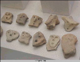 土偶の数々。いろいろな表情の顔が面白い。 中には、悲しげな顔もあったりして。 |