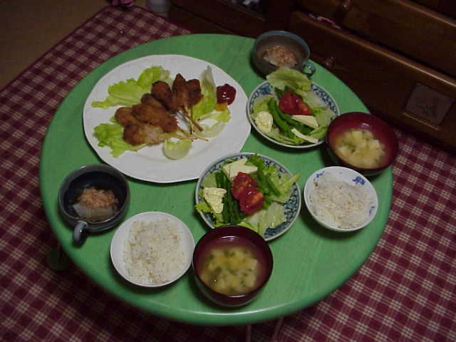 | 6月8日(火) 明日は、遠足なので、今日は「お弁当何にしようかなあ」と考えていた。一緒に行く先生の分も作るので、どきどき 何といっても、他の人も食べるお弁当、それも、さっちゃんじゃなくって、家族じゃない人が食べるお弁当なんて、作ることないもーん。(さっちゃんは、家族よりも私の料理を食べたことがあると思う。うちの家族は、私の料理をほとんど食べたことがないはず。) 明日のメニューは、からあげ・なすのしぎ焼き・ほうれんそうのごまあえ・卵焼き・おにぎり・メロンです。 今日は、早く寝よう。 再び風邪をぶりかえして、せきがひどくなってきた。この4ヶ月で一体何度風邪をひいているんでしょお。 |