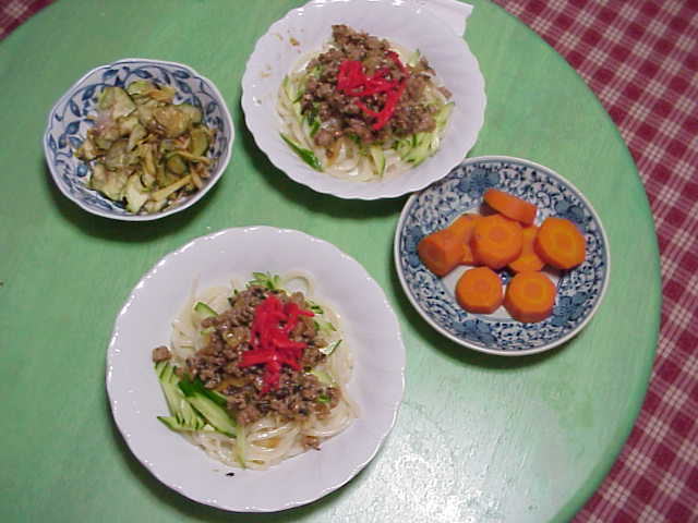 | 9月15日(水) 水曜日にお休みということで、とってもうれしい。朝から、やりたいことが、たくさんあったので、 早起きして活動開始。 今日やりたかったことは、部屋のそうじと洗濯、それからリンクやなっちゃんコーナーの更新、たまっている仕事、お料理、カラオケともりだくさん。あんなに月・火と疲れて、のんびりするぞーと思ったのに、結局、活動してしまったなあ。 あっ、今日のお料理会は、お手製ジャジャ麺。今日は、ちょっとずるをして、味付けをじゃじゃ麺のみそを使ったので、本物っぽかった。それから、なすとみょうがの漬物、人参のグラッセ。 夜は、さっちゃんとカラオケに行く。しかし、2時間、歌ったけど、もう、もたないね。 なっちゃん絵手紙コーナーができあがった。 私だけが楽しむには、あまりにももったいなかったので、一挙公開。 とっても、いいなあと思いませんか。 |