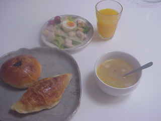 今朝のご飯。朝ご飯。クロワッサンとシーザーサラダ。