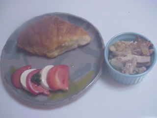 クロワッサンとサンドイッチ。昨日の残りの豆腐チャンプルー。