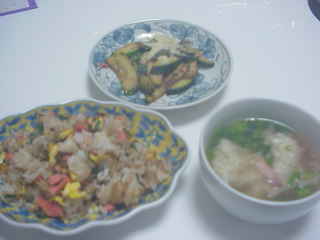 今日はじゃこ炒りチャーハンと水餃子。