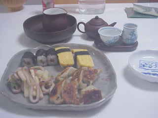 ののりまきといかと山芋の酢味噌あえ。