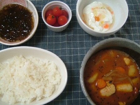 わかめとトマトのしゃきしゃきサラダ・牛肉のいためもの