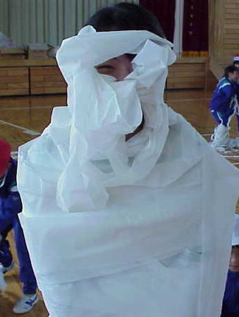 今日、ミイラごっこしたんです。今、流行っているしー。(笑い) ちなみに、トイレットペーパーから紙粘土をつくるんですよ。 というわけで、こんな私ですが、これからもよろしくお願いします。