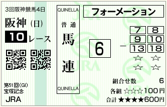 組み合わせで外しました。残念!! 予想としてはいい線行っていたんだけどなー ![]() |