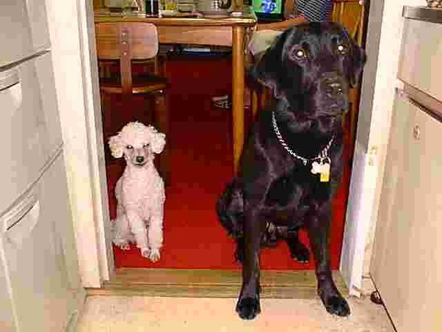 パパが夕御飯を作っている間,お行儀よく待っているところです。