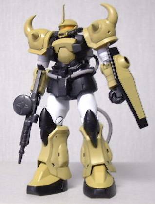 プロト グフ ![]() 機体解説 地上戦用モビルスーツ,MS−06Jザクの性能に限界を感じたジオン軍は、 機動性を向上させた地上用白兵戦用の次期モビルスーツの開発に着手した。 かくして製作されたYMS−07Aは、MS−06の基本設計をもとに、 地上戦用モビルスーツという目的を徹底的追求した作りとなっている。 地球上での冷却効率の悪さから、ザクよりもラジエーター容量を大きくし、 装甲も強化されているが、過度の重装甲をさけ、 予備装甲としてシールドを採用している。 機体製造方法 使用機体:グフカスタム 武器:ザクマシンガン ・椀部を陸戦ザクに交換 ・腹部の三角部を台形に削る ・動力パイプを電線で付ける 機体塗装色 ■:ダークイエロー ■:ブラック ■:ホワイト ■:オレンジ |