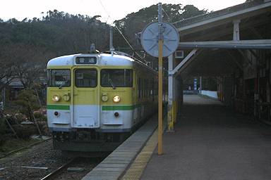 月潟駅には、すでに保存電車が到着していました。パンタグラフも下げられ、もう動くことはありません。