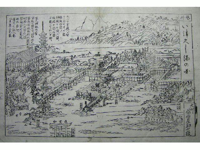 佐伯屋助七の名は天保から安政にかけてみられる。文久4年(1864)に作られた平舞台前の常夜燈籠が見られないので、それ以前の絵図であろう。