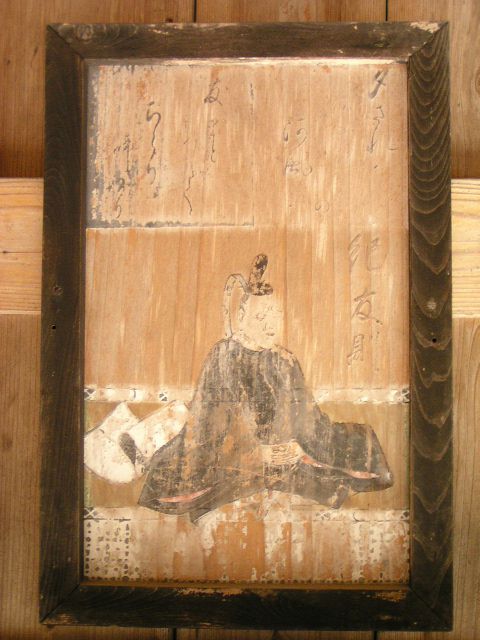 三十六歌仙額はいつ頃描かれたものか誰が描いたものかは定かでない。吹きさらしのため退色、剥離が激しく誰を描いているのか解らないものもみられる。
