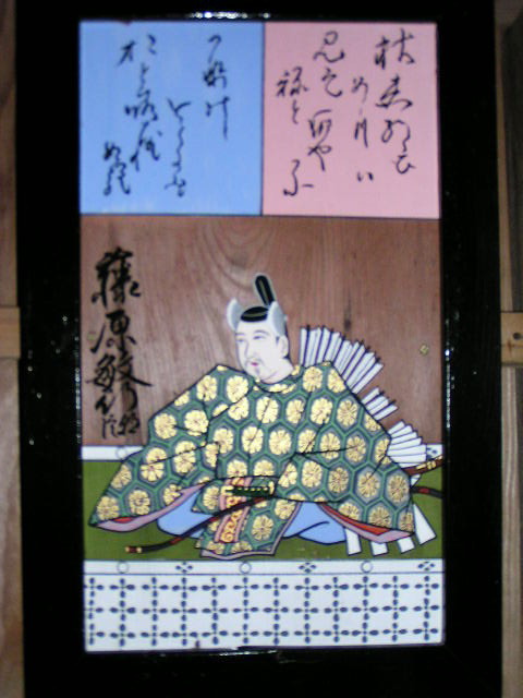 他の神社では三十六歌仙とこれを撰した藤原公任、似せ絵(肖像画)の名手藤原信実のものが掲額されているところもあるが、当社の2面はこれらとは違うものが描かれているのである。