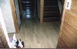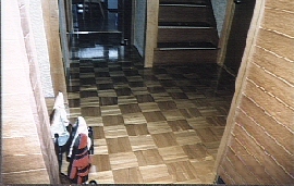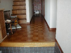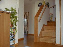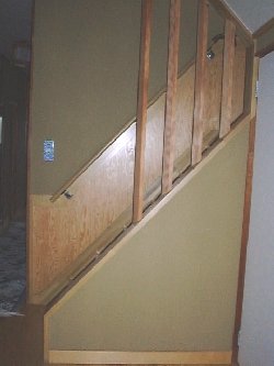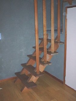 | 階段の桁が中寄りにあるため、大変上り難いため、箱階段にし手摺をつけた。 | |