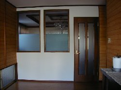 | 玄関から居間が丸見えなので、見えないようにしました。 建具も2mの高さのものに変えました。 | |