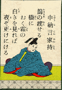 「 かささぎの 渡せる橋に おく霜の 白きをみれば