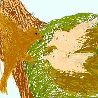 そして、小鳥さんと戯れる女の子。なんか、へん。