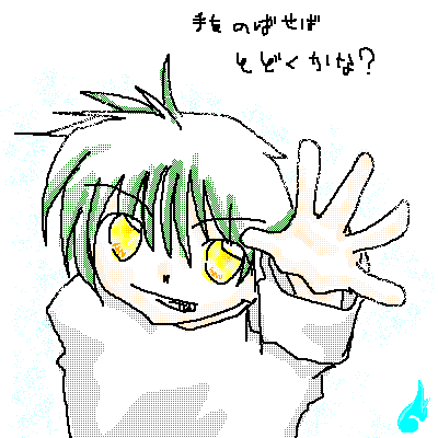 初めまして☆葉(よう)です。 ヘボ絵ですいませんιι 黄緑 根無 [Home Page] 2000/12/18 (Mon.) 00:17:35 はじめまして〜。 (^-^) 名前のふりがな ありがとですっ この絵見とき、なんだかとっても嬉しかったです。 この言葉、かなり好きなので・・・ 目の色がきれいです〜。 (^-^) STUSSY 2000/12/23 (Sat.) 20:30:52 はじめまして〜(*^^*) 俯瞰はとっても難しいのにスゴイです〜(>ω<) にのピン [Home Page] 2001/1/6 (Sat.) 02:36:08 オイラもこの角度の絵って描くの苦手〜 手がうま〜
