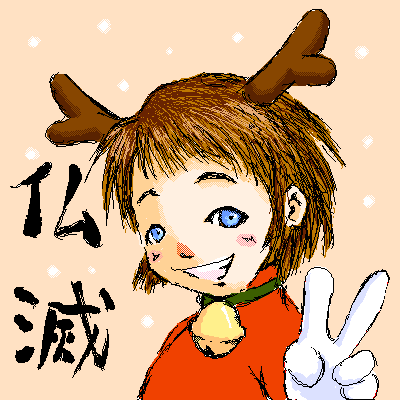 どうも、初めまして、素敵なCGのプレゼントありがとうございます。 こちらもお礼にクリスマスCGを描かしてもらいました。 今年の25日は仏滅だそうです…(w 素敵なクリスマスをお互いすごしましょう(w STUSSY 2000/12/26 (Tue.) 00:19:20 はじめまして♪ 共有ではいつも拝見しております(*^^*) 今日は思っていたほど残業無かった〜♪うれしい〜♪ 仏はなくとも神はいました(*^^*) 黄緑 根無 2001/1/5 (Fri.) 01:40:10 トナカイさん・・・ も描いてみたかったなぁ。 しゃちょさんもお絵描きして頂いて・・・(; ;)←感激してるらしい。 ありがとうございます〜。 (^-^)いつも、共有でイラストは意見してて、どんどんすごい絵になっていくので、かなり期待してみていたんですよ〜。 (^-^) 来て頂いて、ありがとうございました〜♪ にのピン [Home Page] 2001/1/6 (Sat.) 02:30:27 そうか仏滅だったのか〜 だからおいらは1人だったんだな〜(まて