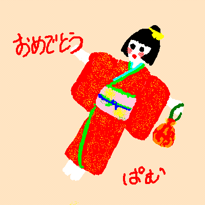 あけましておめでとうございます。 年賀メールありがとうございました。 お礼によってみたら、お絵描きがあったので 落書きさせていただきました。 おめでたそうなものを、と思ったのですが・・。 今年もよろしくお願いします。 STUSSY 2001/1/8 (Mon.) 05:48:39 あけましておめでとうございます〜(*^^*) 黄緑 根無 2001/1/10 (Wed.) 23:37:58 ぱむさんも、ありがとうございますっ♪ レスが遅れてしまって、すみません。 とってもかわいい お人形さんですね。 (*^-^*) こういう雰囲気のイラストも、とっても大好きなので、嬉しかったです。 ありがとうですっ(^-^)