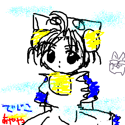 あううう(^^; ちょっとへんっていうかだいぶへんだ。 黄緑 根無 2001/3/18 (Sun.) 00:23:19 あややちゃんのでじこにょ〜。 (*^-^*) 十分良い感じですよ〜♪ こんなに描けるんだもん、3年後(同い年に・・・)にはりしゃさんのようになってるのかなぁ〜。 最近は、若い人がみんな上手いです〜。 (*^-^*) 次は、ぷちこを・・・( ^^)/☆(>_<)☆\(^^ )