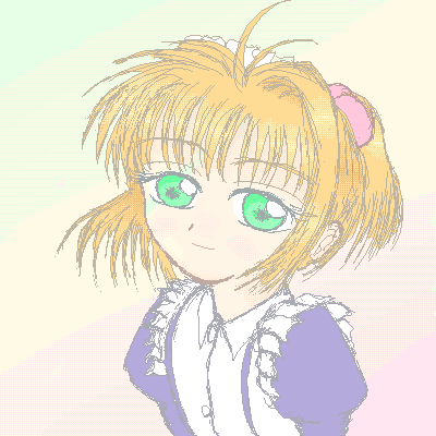かなりトラウマっぽい表情なメイドキャプター(違っ)さくらちゃん……描いてる奴のトラウマがそのまま反映されたのかもしれません(笑) 黄緑 根無 2001/4/13 (Fri.) 02:27:52 レス遅れてしまってすみません。 トラウマさくらちゃんですか・・・ (^-^;) さくらさんはメイドさんも集めてたのか〜。(笑) 最近、毎日さくらのCD聞いてます♪ あ、メールは書ける状態じゃないので、みなさんしばらくお待ち下さいませ・・・ もか 2001/5/19 (Sat.) 22:40:49 瞳の描き方が独特です(*^^*)