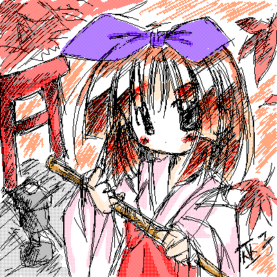 まともに描こうと想ったのに、眠くて何描いてるか分からなくなったので、身体消してしまいました・・・ (^-^;) 文字の色は、何色に成ってるか はっきりとはわかりません・・・(汗) はやくモニター買わないとっ 肌色なら、いつも作ってるからカンでなんとかなりそうだけど・・・ もか [Home Page] 2001/5/24 (Thurs.) 15:01:29 文字の色は根無さん色に染まってますよ(笑) モニタも19インチくらいが最近安いですよね(*^^*)
