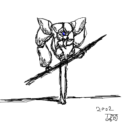 16:09:39 発作的に絵が書きたくなって来た者です。 めちゃくちゃ雑なのでなんだか分かりません。 ホントはこれはかかしです。 では、また縁があれば 黄緑 根無 2002/7/15 (Mon.) 00:59:21 初めまして。 お絵描きありがとうです〜。 ふと絵が描きたくなるときってありますよねっ かかしですか。(笑) なんとなく、ガンダムに出てくる何かに見えるけど・・・ って、気のせいか。(^x^;) |