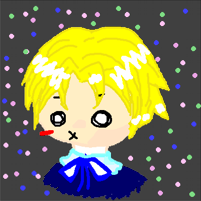 ピノ 2002/7/11 (Thurs.) 21:01:31 なんか変!! 黄緑 根無 2002/7/15 (Mon.) 00:51:44 初めまして。お絵描きありがとうです〜。 ぷよぷよですねっ(笑) ふよ〜んになってるけど・・・ なんだか、この目線が みょ〜に気になるんですが。(笑) |