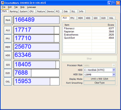 <MBA+WindowsXp(32Bit)で、CrystalBench2004を計測>