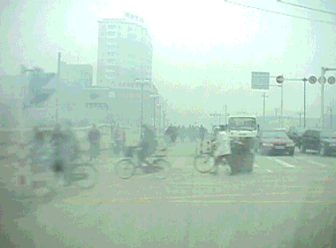 朝の通勤風景,視界が悪いのはホコリのためで霧ではありません.