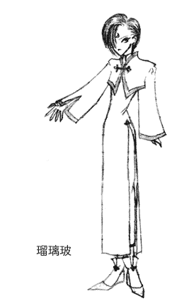 不機嫌面の斎主様です(笑)。 中性的という事で、衣装は胸があってもなくても解らないデザインで(笑)。 っていうか、男女の描き分け、出来ません(笑)。 ちなみに本当はもっとずっと神秘的な美貌の持ち主…の筈。 所詮文章書きだからね(涙)。 服は白地に藍色の縁取り。飾り紐と釦は銀糸です。 ↑は瑠璃玻のイメージカラーなので。 |