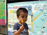 中国自動車道を岡山県まで走り、落合JCTから米子自動車道に入ると大分先が見えてきた感が強まります。蒜山(ひるぜん)高原SAではジャージー牛乳ソフトをけいたろがGet。顔中をべたべたにして、ぱくついています。2/3をけいたろが食べ、残り1/3(ほとんどコーンカップ…)を父親が、一口だけ母親がもらうという配分をされてしまいました。