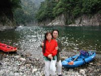 | 上瀞の休憩所にて | 志古乗船場から下流を望む | 足がすくんで立てましぇん… |