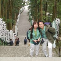 瀞峡見物のあとは熊野本宮大社に行きました。社殿は撮影禁止ですが、その作り、威風といい、まさに神様がいらっしゃるかのようです。翌日、速玉大社、那智大社にも行きましたが威厳は本宮大社が随一です(右の写真は参道を階段上から撮ったもの)。