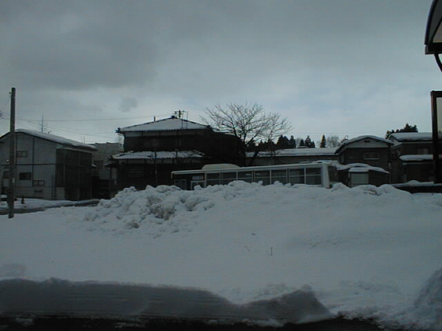越後田沢あたりですが、バスは雪山の向こうです。けっしてバスは埋まってないんですが・・・。