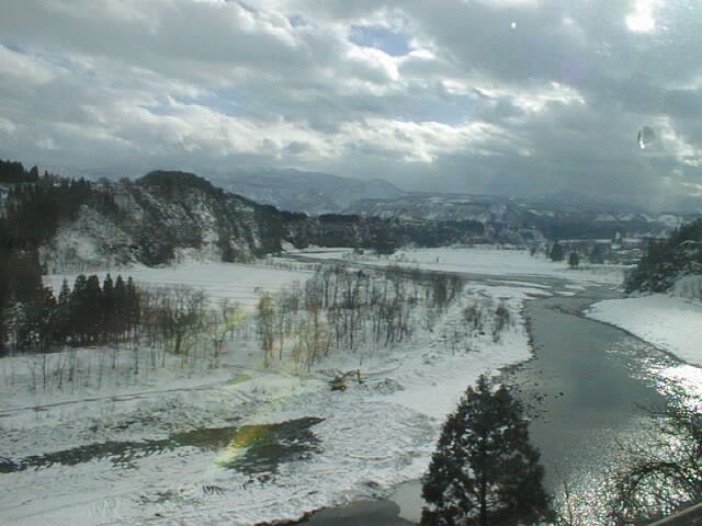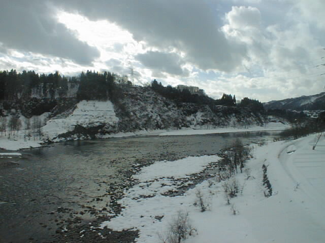 列車は信濃川沿いを走っていきます。戸狩野沢温泉まで、まだ長いです・・・何せ40km/hほどでしか