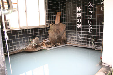 の味がし、においはない。壁には、源泉に鬼もほほえむ地獄の湯と書かれている。すばらしい温泉
