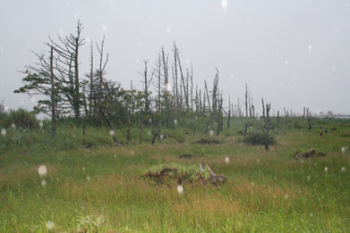 い木肌であり、たくさんの風化した白い木が周囲に点在している。野付半島ネイチャーセンターから