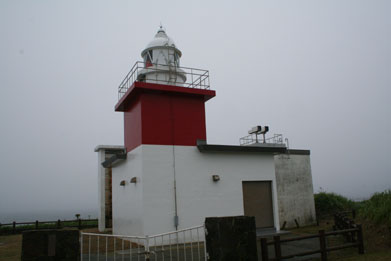 の四角くて低い花咲灯台がある。車石は玄武岩が放射状の節理構造になったもので、直径は6mと