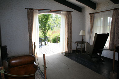とが出来る。グリーンハウスは内部の見学もすることが出来、白いカーテンやテラスや岳が弾いてい