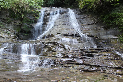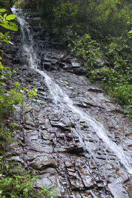 万代の滝 粟又の滝の小型版のような滝で、水が滑り落ちるように流れている。